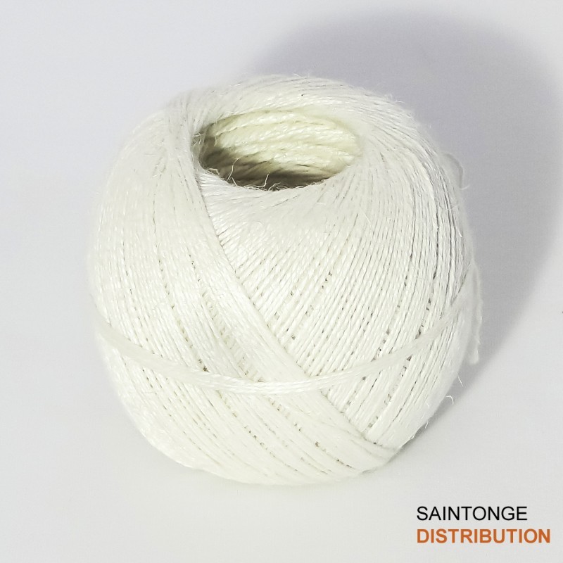 Ficelle apte au contact des aliments aqueux, gras. Sa fabrication française est conforme au règlement CE. Pelote de 200g pour usage manuel.