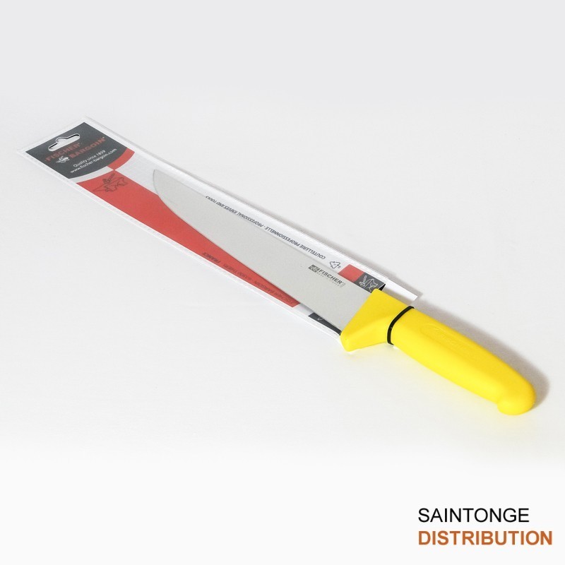Le manche ergonomique confort antiglisse jaune est antibactérien. Conforme à la méthode HACCP. Couteau professionnel pouvant servir aux bouchers et aux cuisiniers amateurs.
