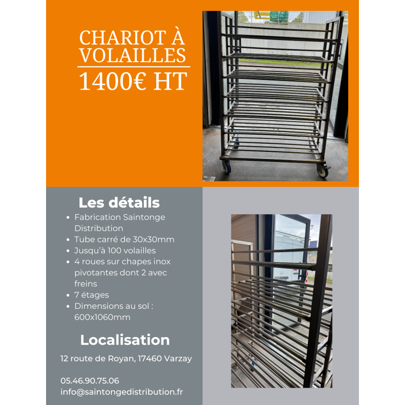 • 4 roues sur chapes inox pivotantes dont 2 avec freins