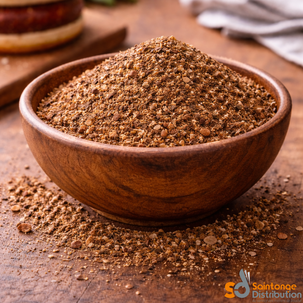 Cet assaisonnement garantit un goût régulier et maîtrisé, essentiel pour les professionnels de la restauration rapide, des snacks et des food trucks. Il assure un assaisonnement homogène de la viande hachée, facilitant la production en série et la constance des saveurs.
