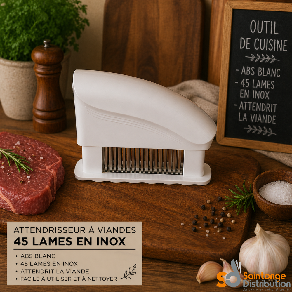 Attendrisseur à viandes en ABS blanc de 45 lames en inox.