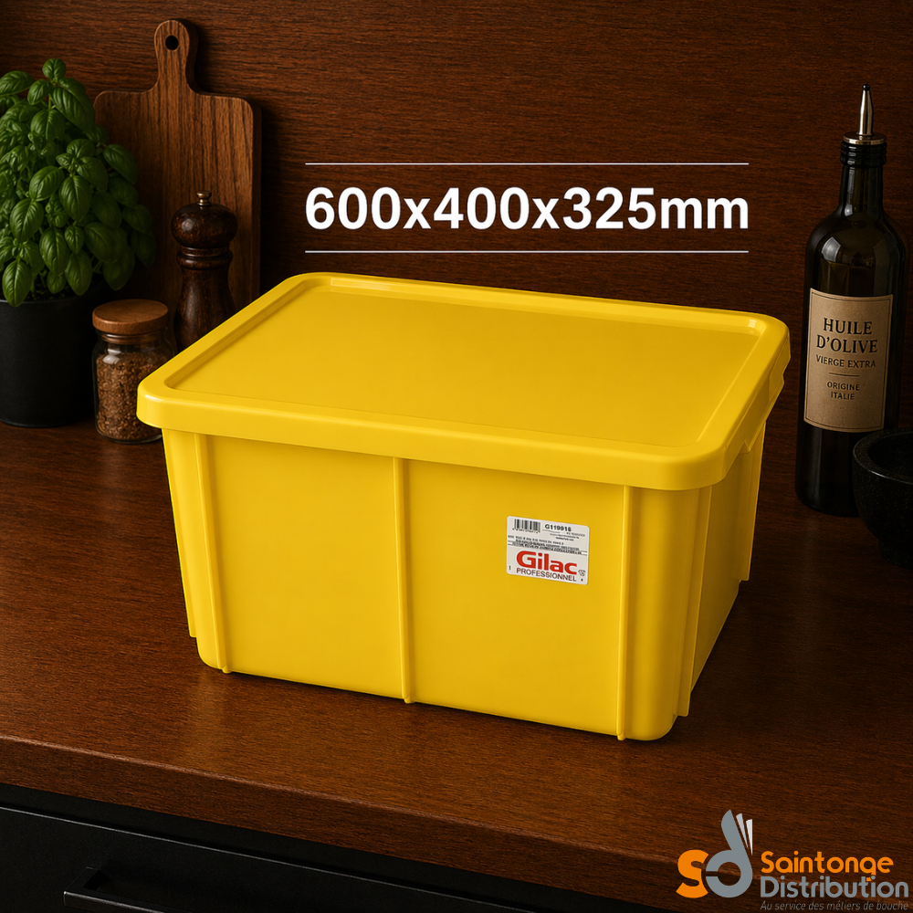 Le bac rectangulaire Gilac 55 litres jaune avec couvercle est conçu pour répondre aux besoins des professionnels de la restauration, des collectivités et de l’agroalimentaire nécessitant une solution fiable pour le stockage de gros volumes. Avec ses dimensions 600 x 400 x 325 mm, il offre une grande capacité tout en restant compatible avec les standards professionnels de manutention et d’organisation.