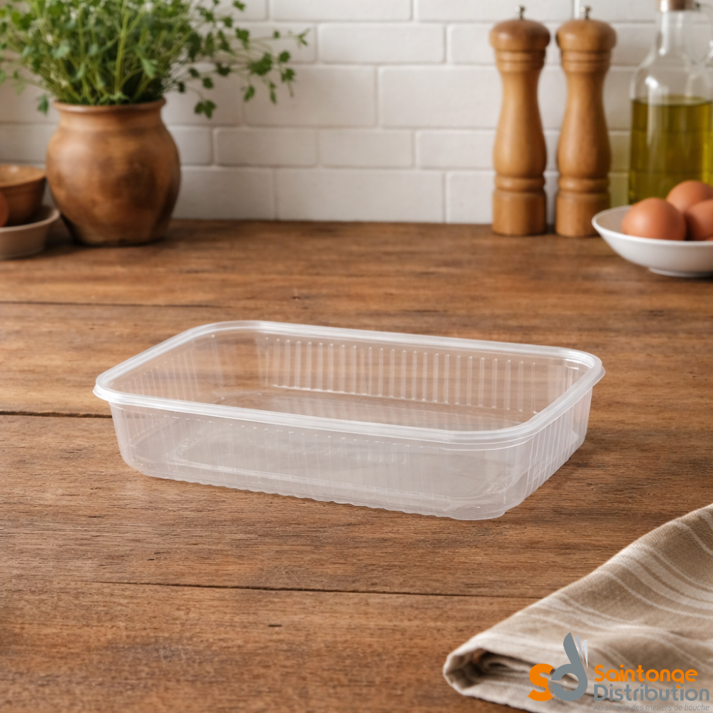 Avec sa contenance de 750 ml, elle convient idéalement aux portions individuelles généreuses, plats cuisinés, accompagnements, salades composées ou préparations traiteur. Son format pratique permet une présentation nette et professionnelle tout en garantissant une excellente conservation.