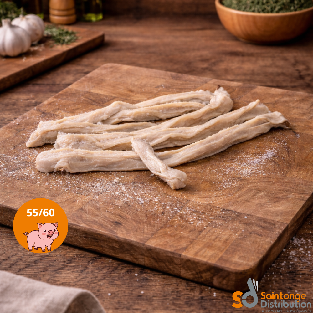 Les suivants sont conditionnés en filets de 100 bouts et le plus souvent utilisés pour la fabrication de Saucisse de Morteau, saucisson à cuire, andouillette, saucisson sec.Le petit conseil pour les boyaux naturels : rincer les boyaux à l’eau froide puis les faire tremper 30 minutes et pas plus dans une morte, c’est-à-dire, 28 à 30°C maximum.