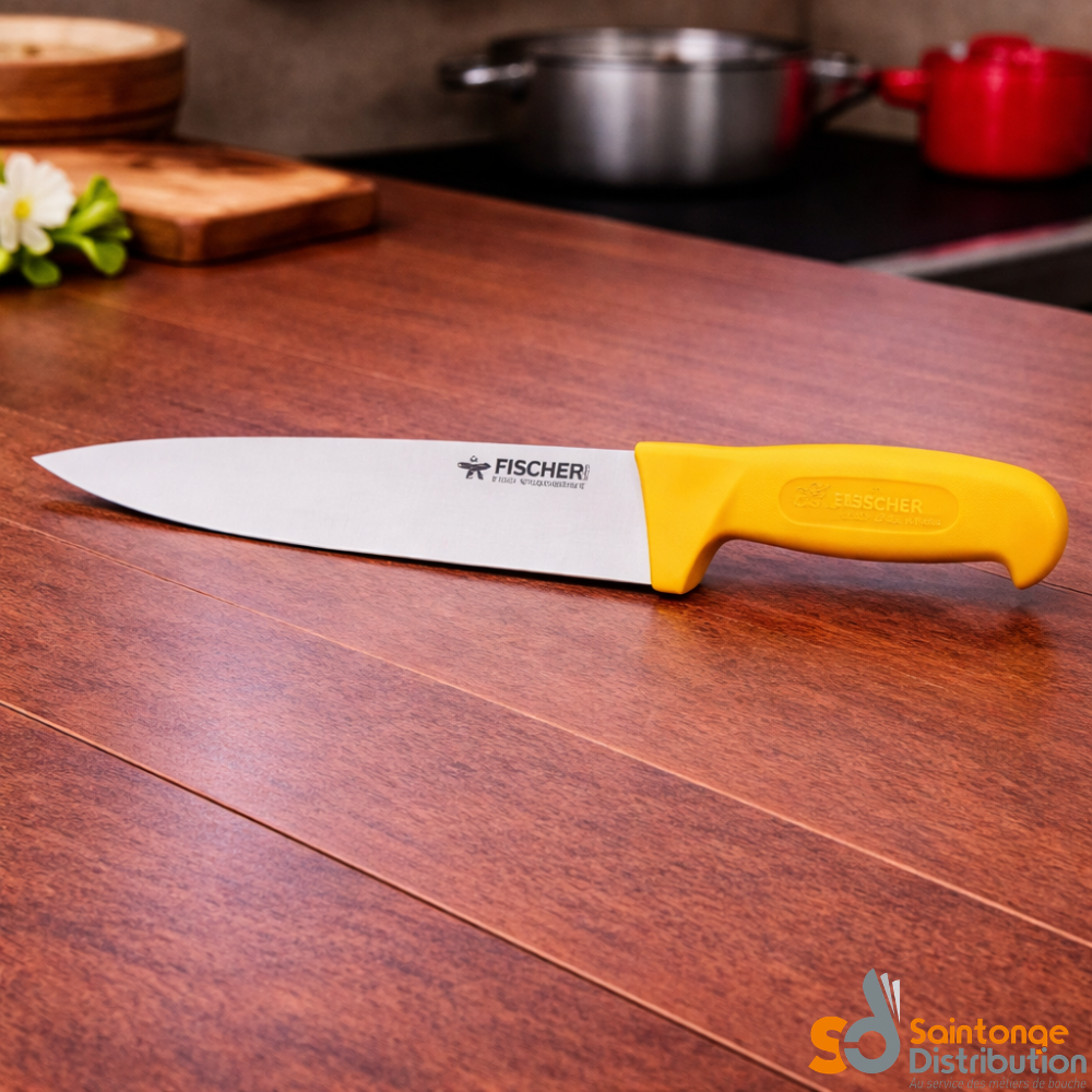 Son manche ergonomique jaune assure une excellente prise en main et permet également une identification rapide en environnement professionnel, notamment dans le respect des normes HACCP.