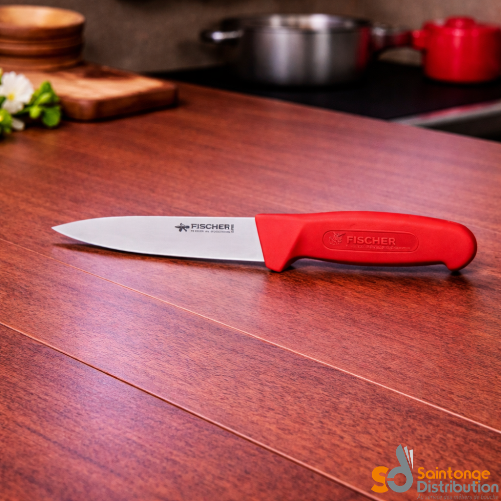 Le couteau à désosser 14 cm rouge Fischer Bargoin est un outil indispensable pour les professionnels des métiers de bouche et les passionnés de cuisine. Conçu pour offrir précision, maniabilité et efficacité, il est idéal pour le désossage, le parage et la préparation des viandes.