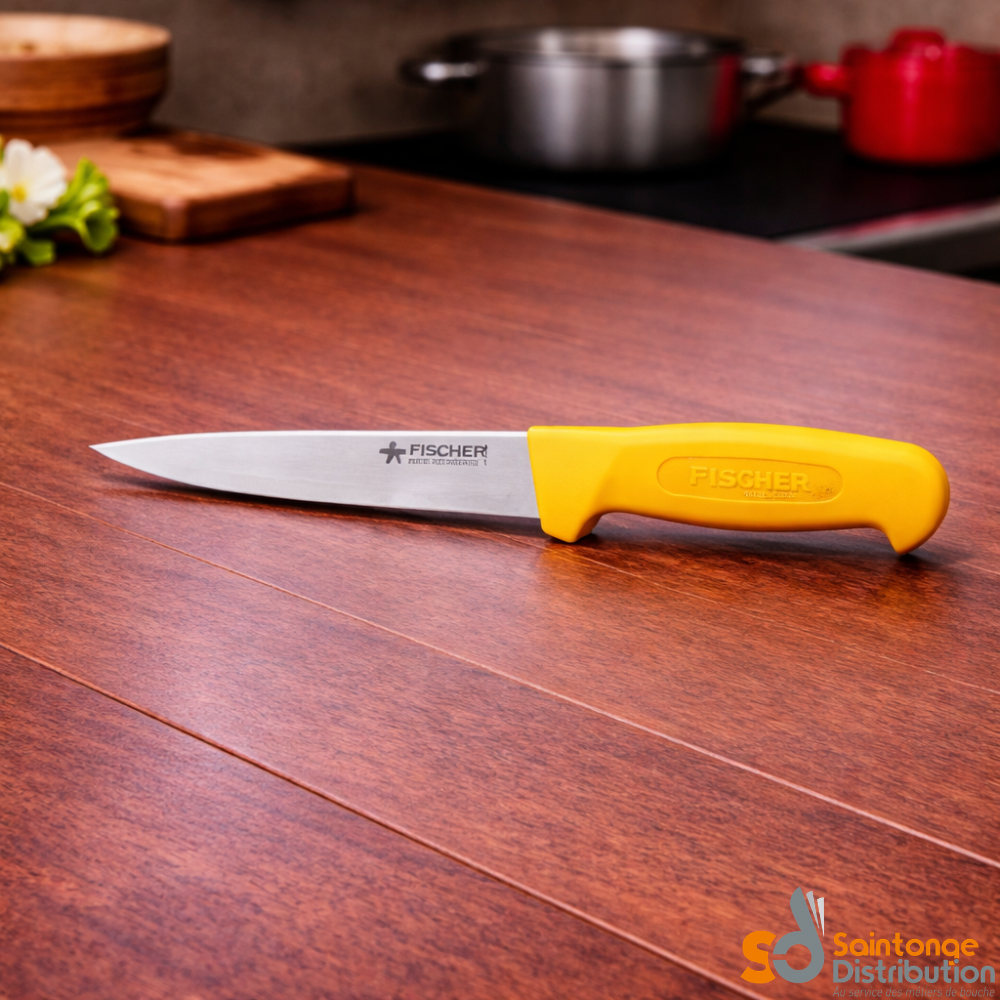 Le couteau à désosser 17 cm jaune Fischer Bargoin est un outil incontournable pour les professionnels des métiers de bouche. Conçu pour le désossage, le parage et la préparation des viandes, il offre un excellent équilibre entre précision, robustesse et hygiène.