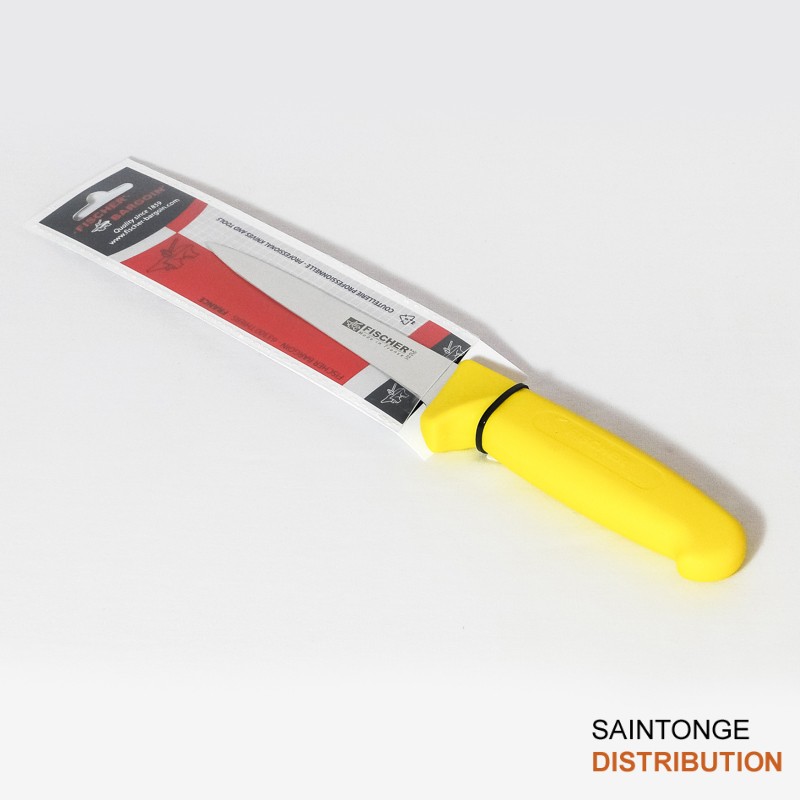 Le manche ergonomique confort antiglisse jaune est antibactérien. Conforme à la méthode HACCP. Couteau pour professionnel pouvant servir aux bouchers et aux cuisiniers amateurs.