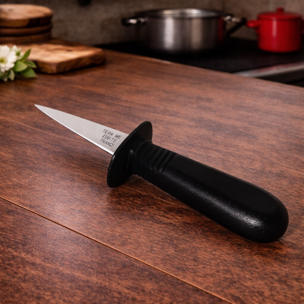 Doté d’une lame courte de 6 cm en acier inoxydable trempé, il offre une excellente résistance à la corrosion ainsi qu’une grande solidité. Sa conception permet d’ouvrir facilement les coquilles en exerçant un levier maîtrisé, sans risque d’endommager la chair.