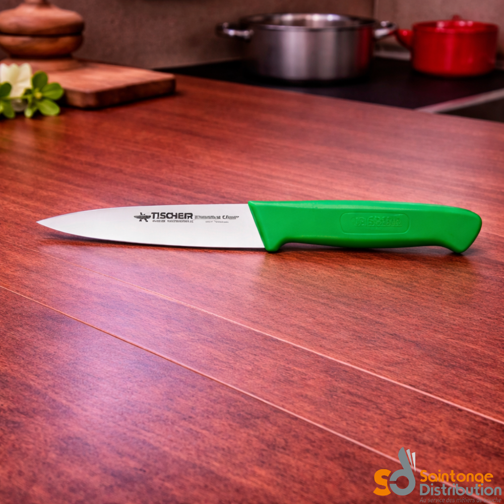 Disponible en plusieurs coloris (bleu, jaune, noir, vert, rouge ou rose), ce couteau permet une organisation pratique en cuisine, notamment pour différencier les usages ou respecter certaines règles d’hygiène.