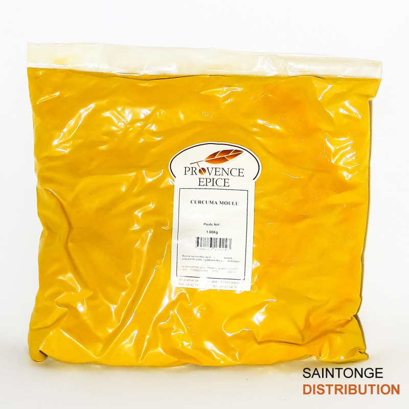 Curcuma moulu conditionné en poche de 1kg.