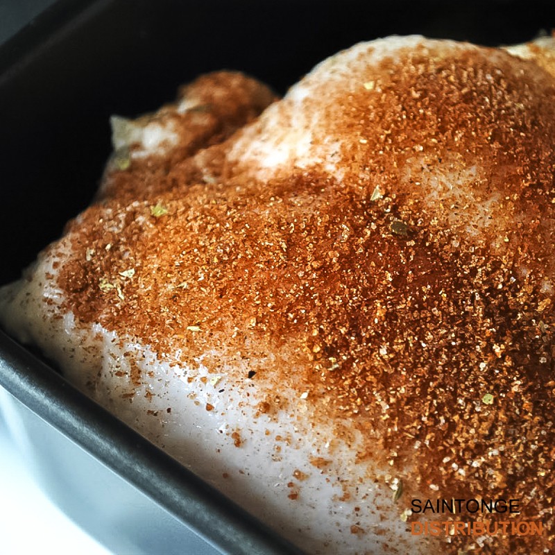 Produit aux épices telles que le Poivre de Chili, Paprika, Poivre Noir et ail.