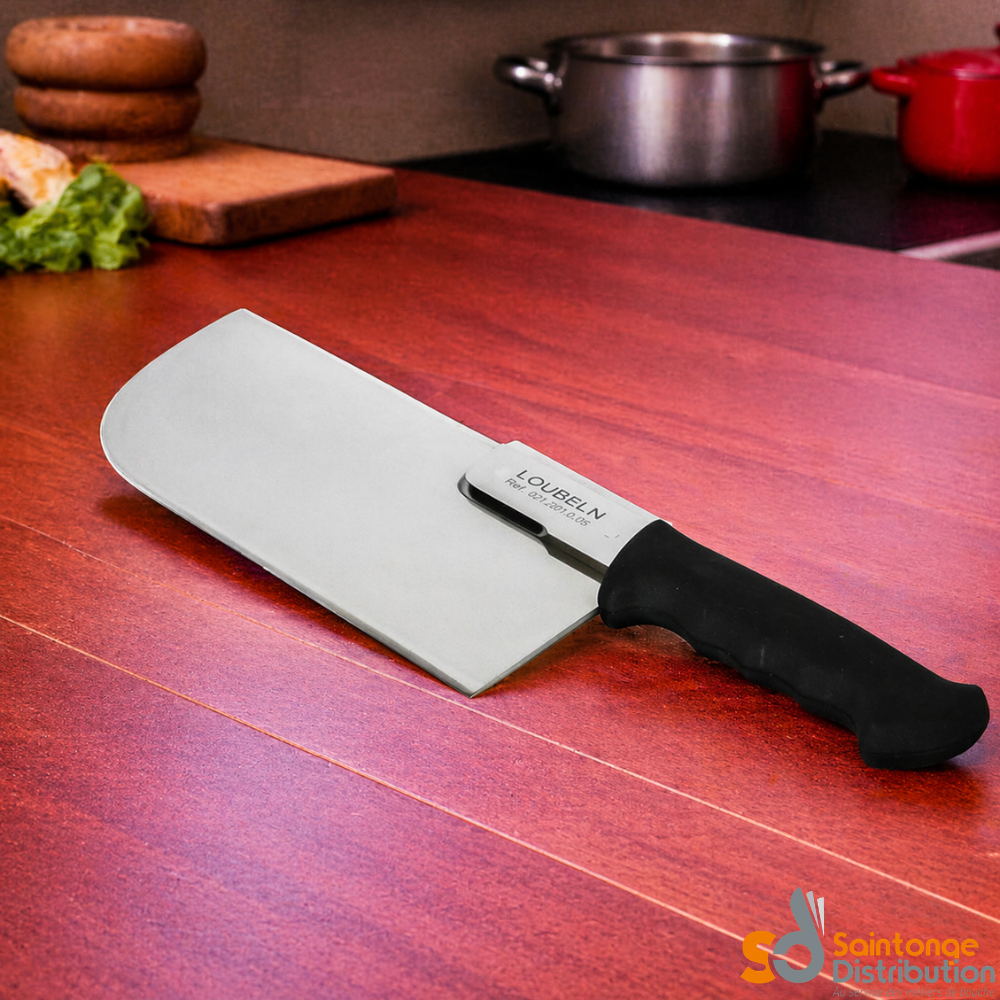 Sa lame de 28 cm en acier inoxydable assure une excellente résistance à la corrosion et une grande durabilité. Le dos droit offre une stabilité optimale lors de la coupe, permettant un meilleur contrôle et des gestes précis, même sur des pièces volumineuses.