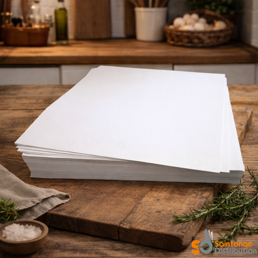 Avec leur format prédécoupé 25×35 cm, ces feuilles facilitent la préparation des commandes et optimisent le temps de service. Vous gagnez en efficacité tout en garantissant une présentation soignée.