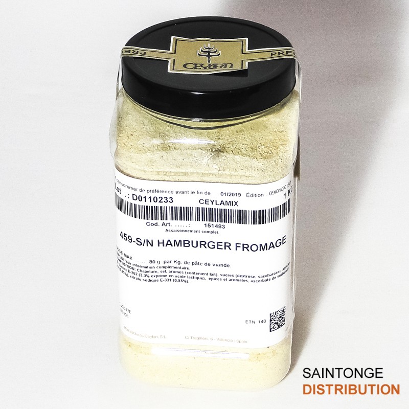 L´épice hamburger fromage conserve, lie et donne du moelleux à vos viandes hachées.