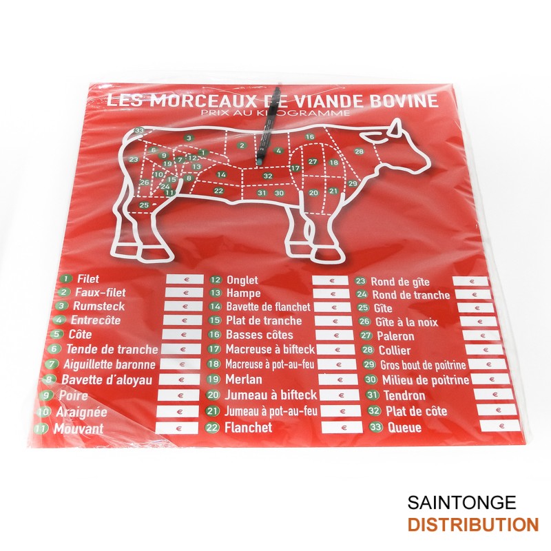 Panneau d’affichage Boucherie / Charcuterie / Traiteur « Presto » les morceaux de viande bovine.