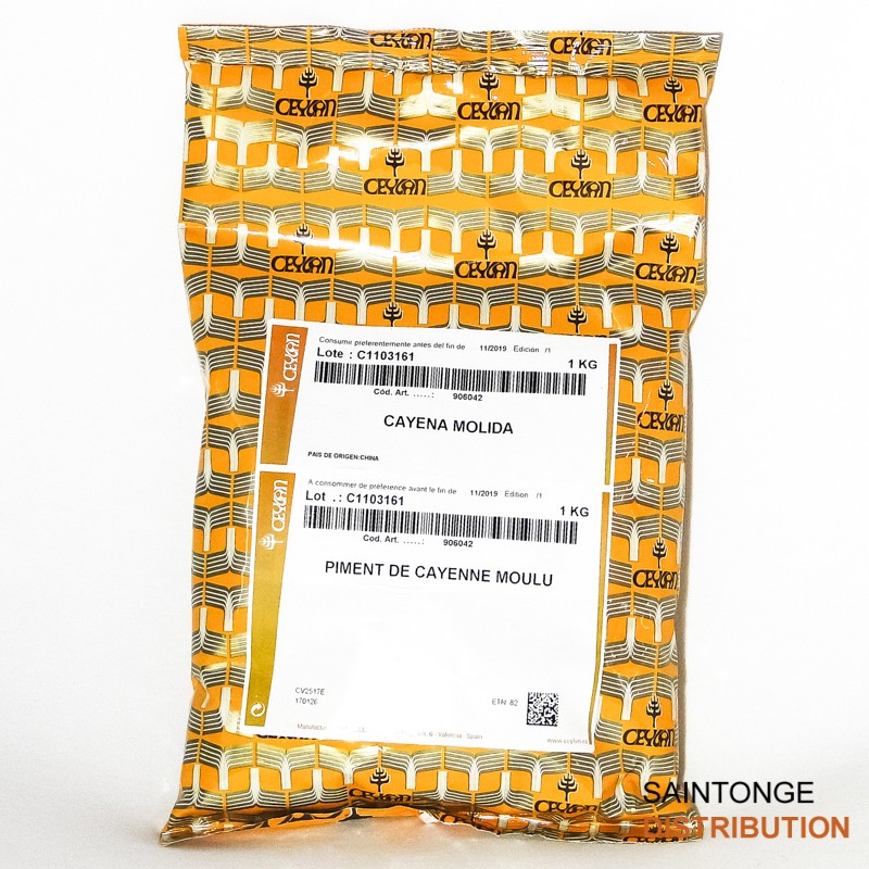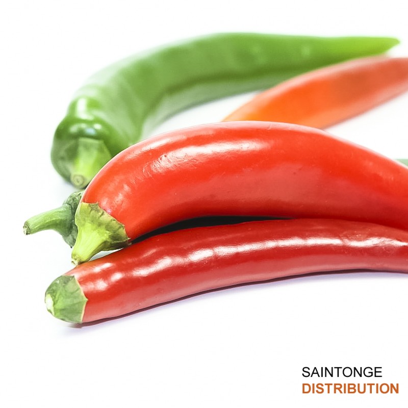 Piment moulu et sec. Avec une forme conique, sa couleur rouge sombre et ses graines oranges se mélangent à votre convenance.