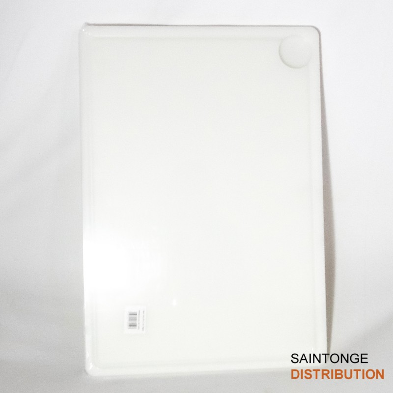 Planche à découper fabriqué en polyéthylène haute densité recto avec 6 pieds pour une meilleure adhérence, de couleur blanche.