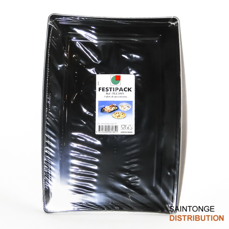 Plat de présentation, noir, rectangle avec des poignées, matière polystyrène.
