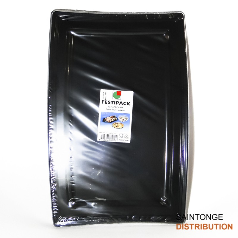 Plat de présentation, noir, rectangle avec des poignées, matière polystyrène.