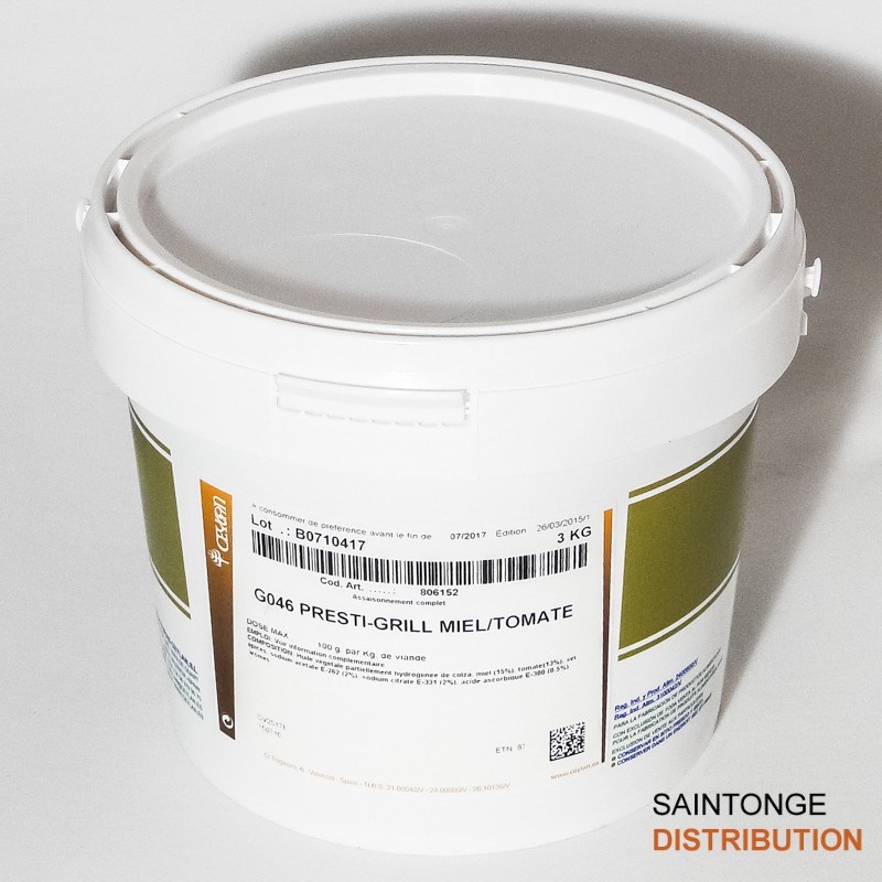 Utilisation : En marinade ou en enrobage, 80 à 100 gr par kg. Badigeonner à l´aide d´un pinceau les pièces de viandes.