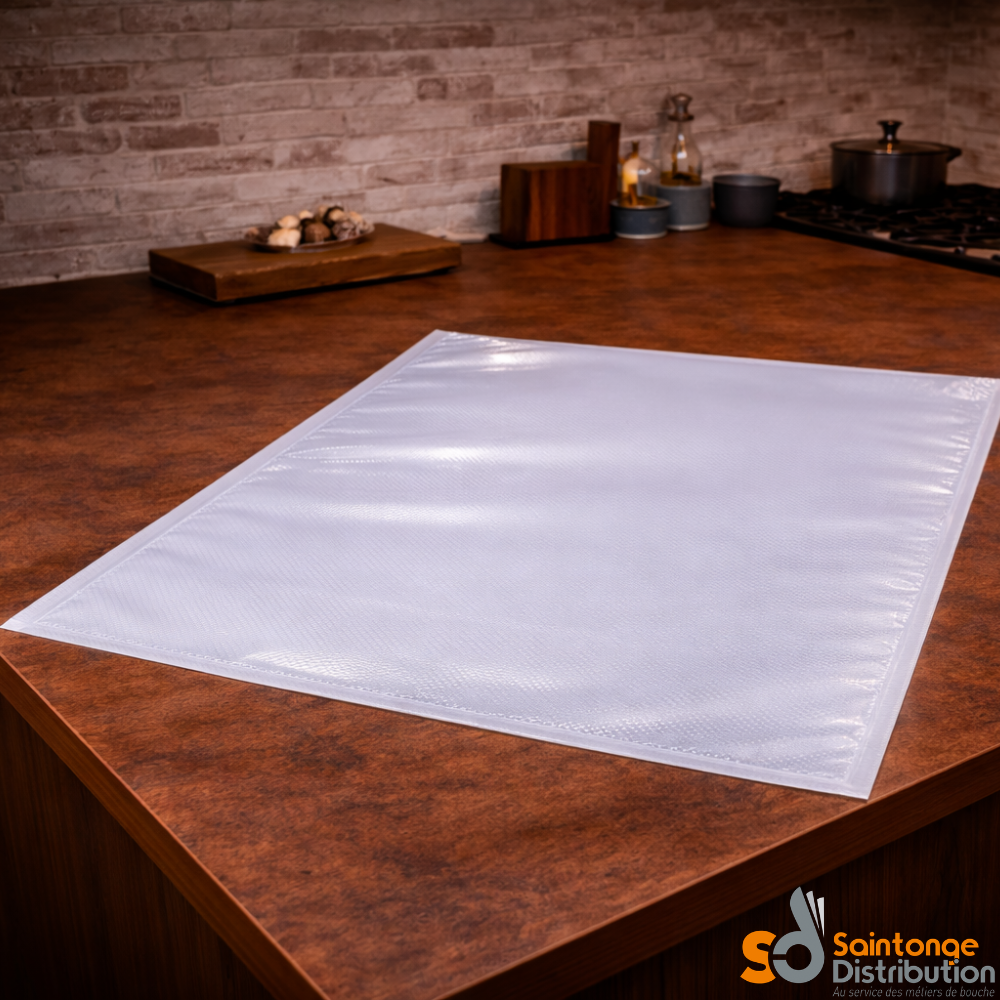 Grâce à leur texture gaufrée, ils assurent une circulation optimale de l’air lors de l’aspiration, garantissant une mise sous vide complète et une soudure parfaitement hermétique.