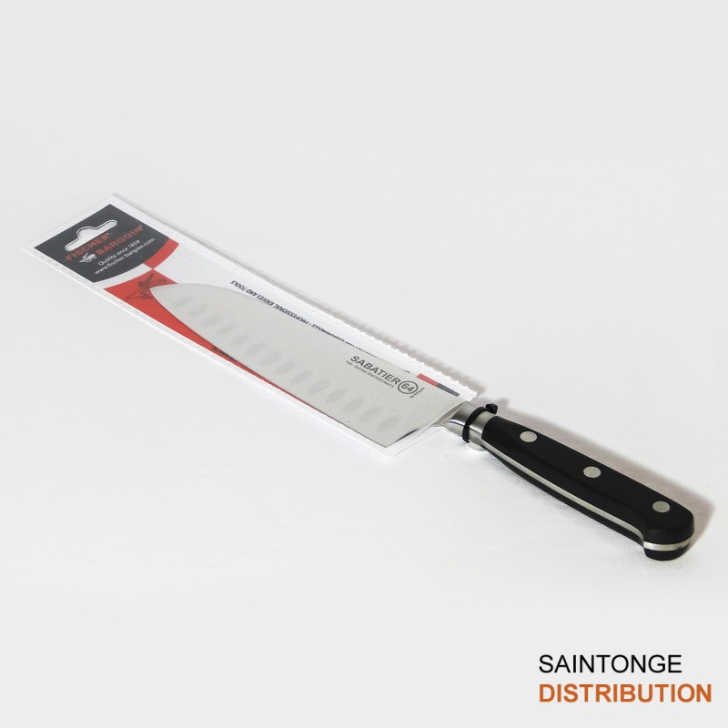 Couteau typiquement Japonais. La polyvalence est son atout majeur. Découper, trancher, émincer, hacher que ce soit les viandes, les légumes ou les poissons, il sait tout faire. Ses alvéoles permettent aux aliments de ne pas adhérer au couteau.