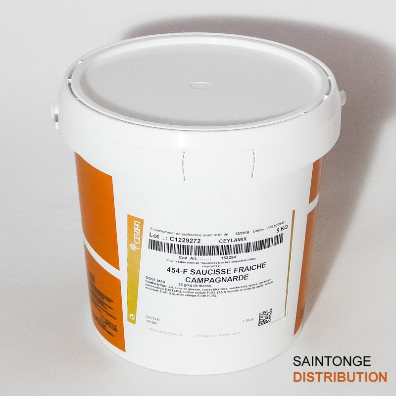 Emploi : 35g par kg de mêlée sans ajouter de sel pour l’assaisonnement complet pour la fabrication de saucisses fraîches, chipolatas, chairs, crépinettes.