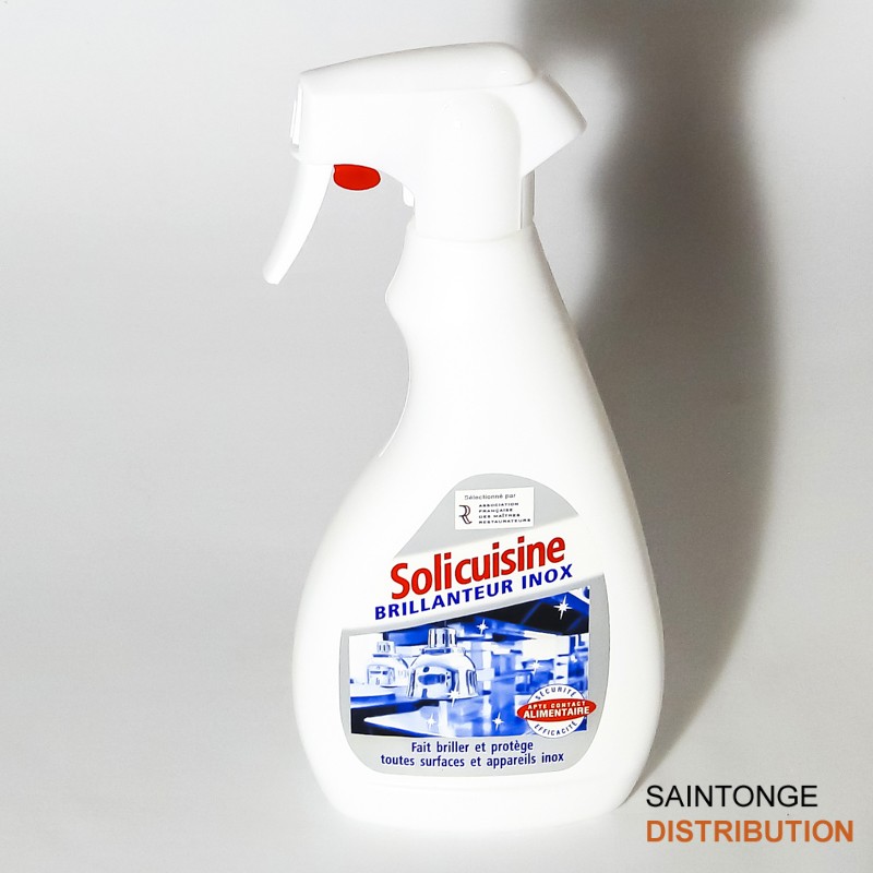 Solicuisine Brillanteur inox s’utilise sur toutes les parois en inox extérieures de laboratoires : lave-vaisselles, tables, comptoirs, plans de travail, bacs a plonge, chariots, trancheuses, hottes, fours, chambres froides, etc…