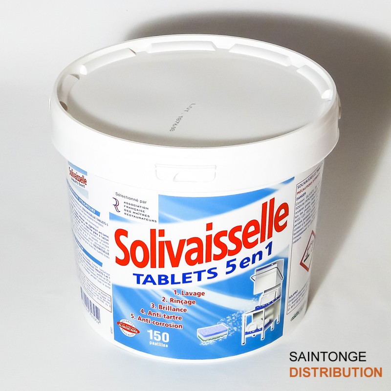 Solivaisselle Tablets 5 en 1 assure des résultats irréprochables sur toutes les salissures. Économique, il remplace 5 produits (poudre de lavage, liquide de rinçage / séchage, sel régénérant et sel de zinc). Il prévient de la formation du tartre et rend la vaisselle étincelante. Action anticorrosion. Prolonge la durée de vie de la machine.
