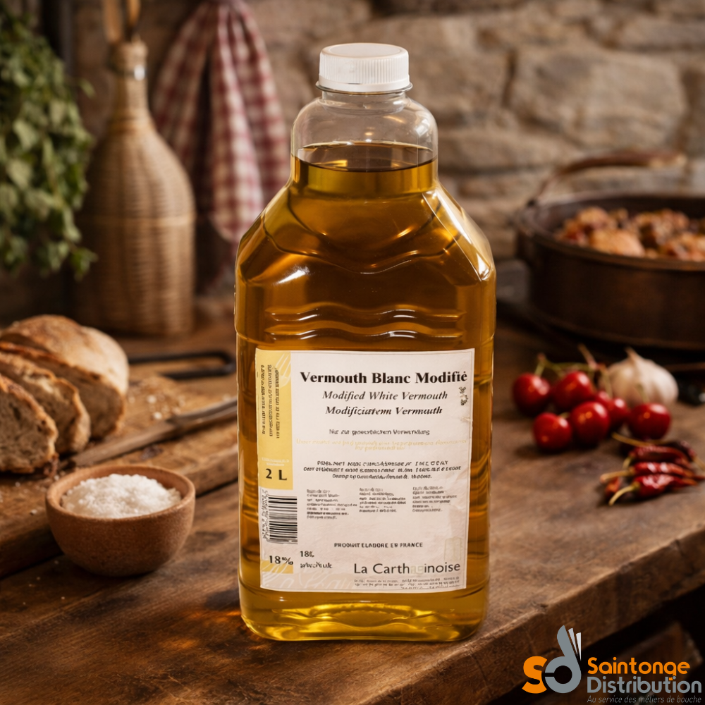 Le Vermouth Blanc Modifié 18% vol. constitue un ingrédient technique essentiel pour apporter une touche aromatique raffinée et végétale à vos préparations alimentaires professionnelles.